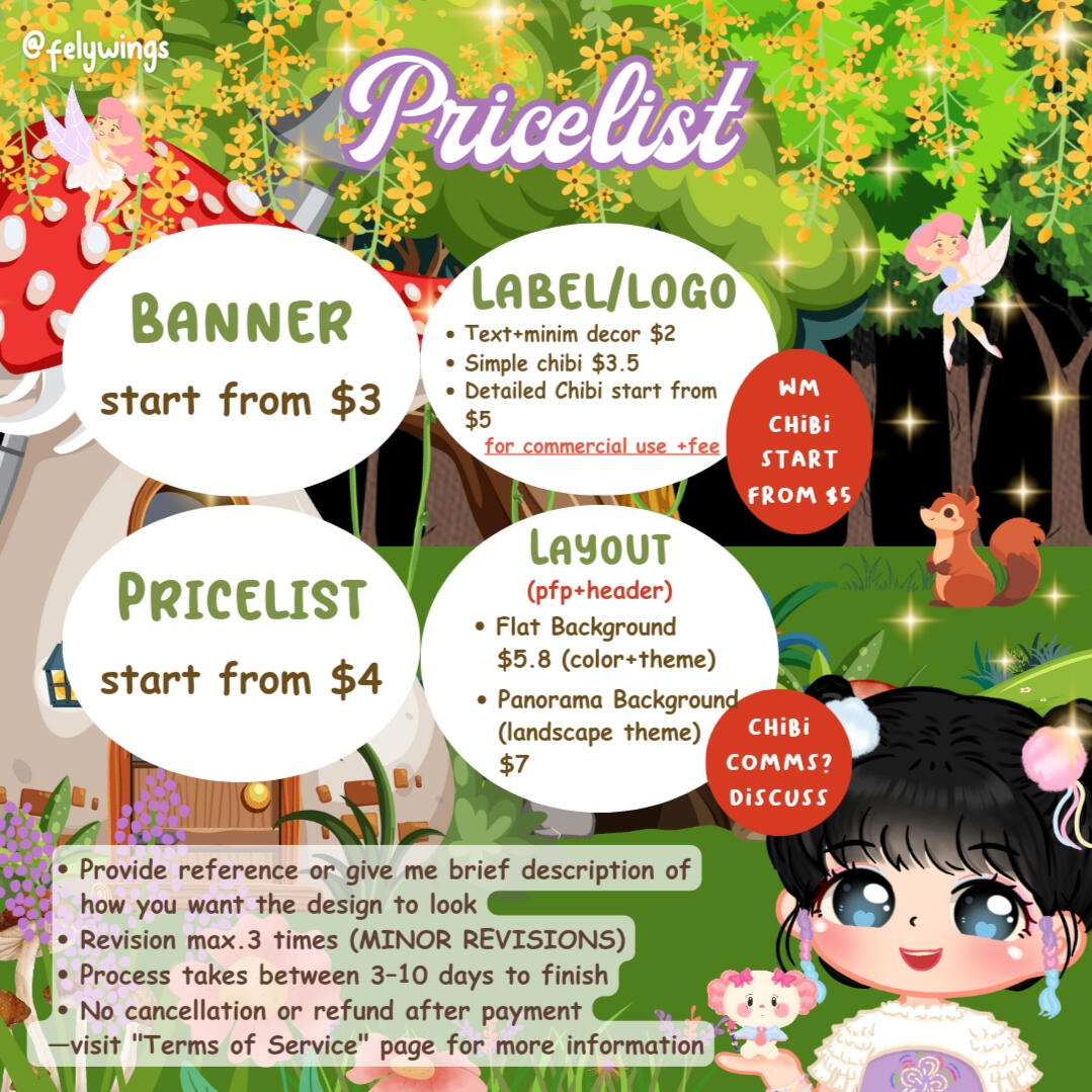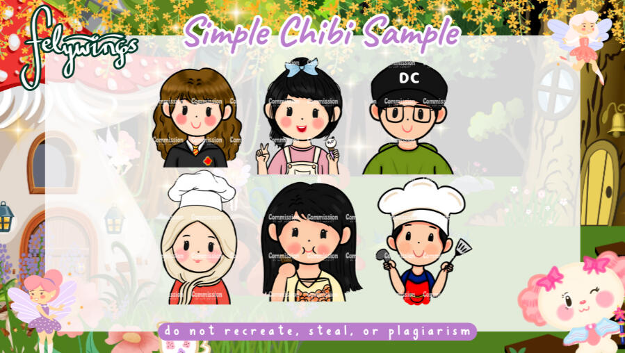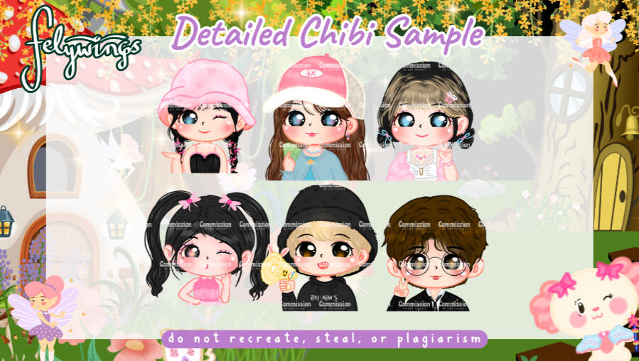 • REVISION max.3 times (minor) more revision will be charged. MINOR revision (Typo/Recolor). Chibi revision only includes recoloring.